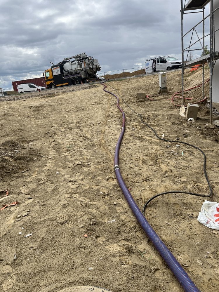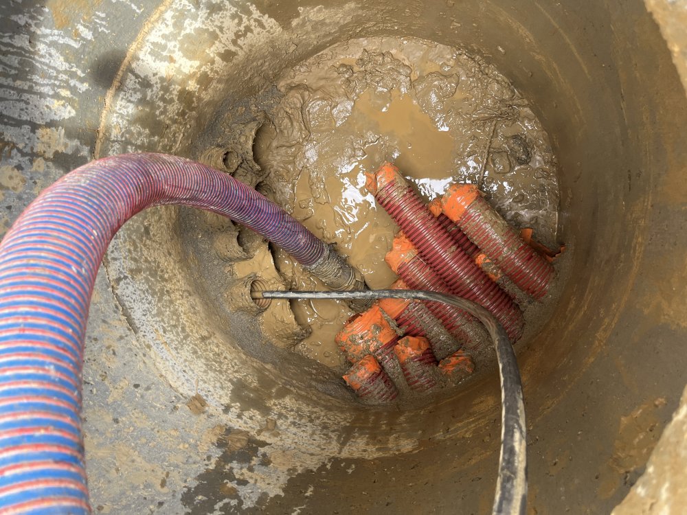 Curage de fourreaux électrique pleins de boue sur un chantier à Vaulx-Milieu : JP ASSAINISSEMENT vous présente ses dernières photos.