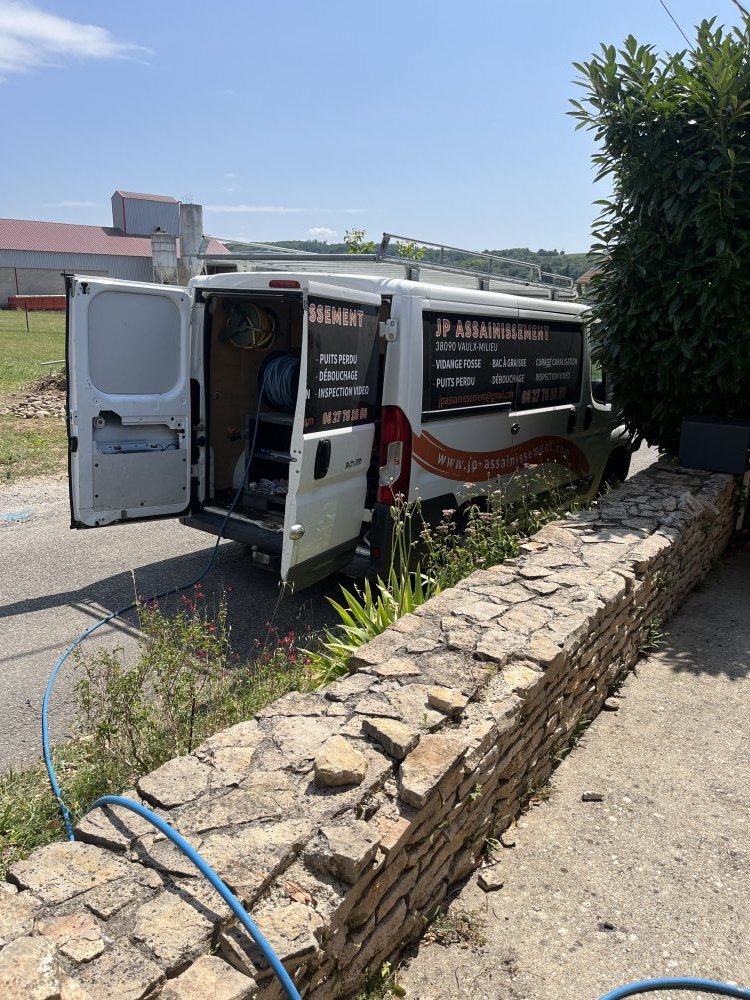 Débouchage d'une canalisation d'arrivée de fosse à Vaulx-Milieu : JP ASSAINISSEMENT vous présente ses dernières photos.
