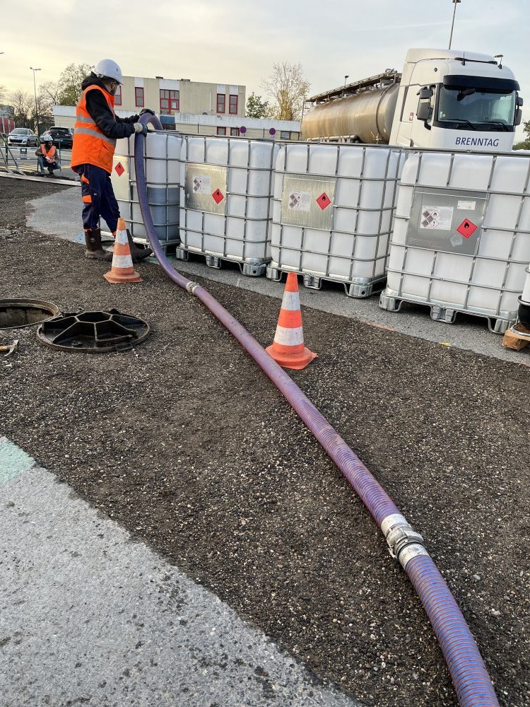 - Pompage de produits polluant dans un reseaux ep dans une entreprise et transfert dans des GRV à Mions