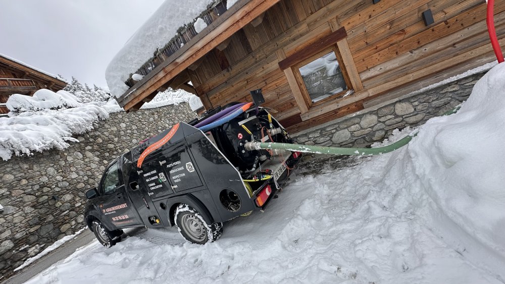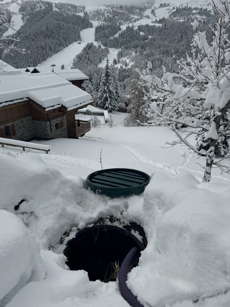 Intervention urgente en haute montagne pour la vidange et nettoyage d'une fosse de relevage boucher à Méribel les Allus