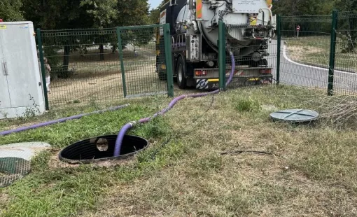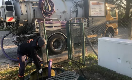 Vidange et nettoyage haute pression d 'une fosse de relevage au grand parc de Miribel Jonage