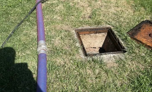 Vidange et nettoyage d'une fosse de relevage dans un camping à Vernioz